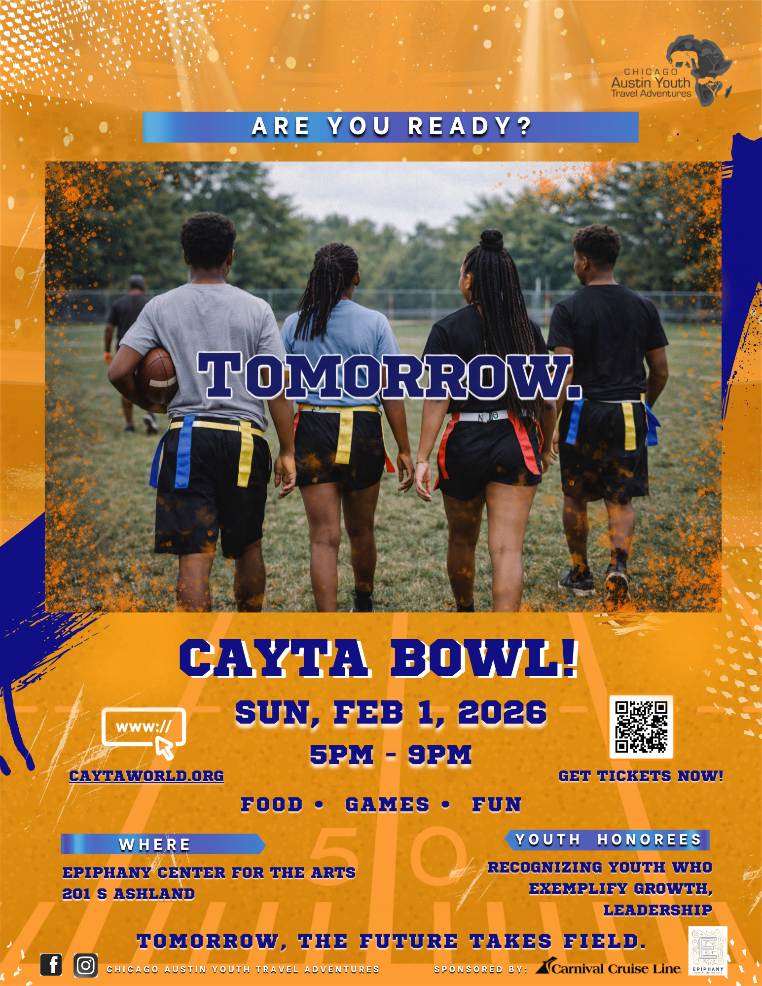 Get ready to join the fun…CAYTA Bowl is coming! Join us Sunday, February 1 for a high-energy youth football experience bringing together competition, culture, and community. Wear your sports, or other fun attire!